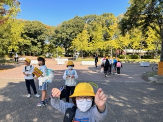 大泉緑地に到着し、全体説明を聞いた後、班での活動を開始しました。