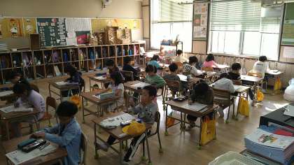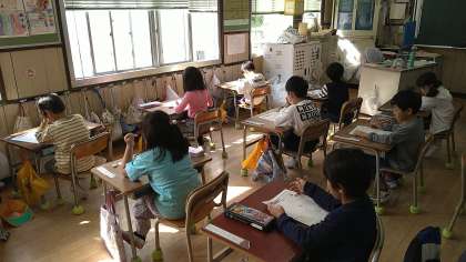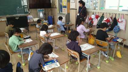 単元は、「繰り上がりのあるたし算」です。10のまとまりをしっかり考えて計算しています。テストの後半には文章問題もあり、立式をして答えを出しています。