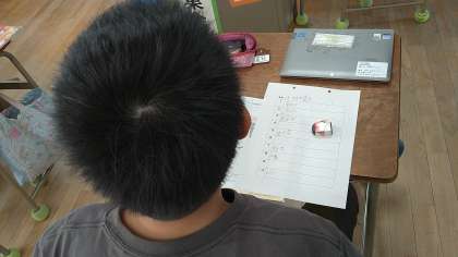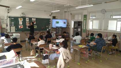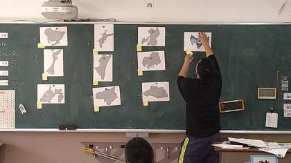 「カンガルー」「左手」「金魚」「スペースシャトル」「カエル」などを模倣した絵を見せて、どこの都道府県かを考えています。なかなか難しそうですが、ひらめきが大事なようです。