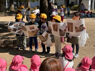 最後に自分たちが用意した遊び道具を、幼稚園や保育所の子たちへ説明しています。