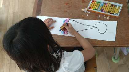 「なが〜いかみ(紙)から」というテーマで絵をかいています。