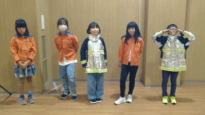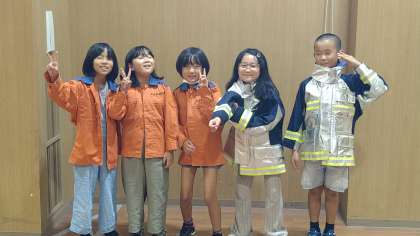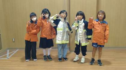 最後だと思っていたら、最後の最後に消防隊の服(防火服とオレンジ)を着せていただきました。