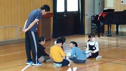 2年は発表内容は「劇」です。「劇」に決まったきっかけは、国語で学習した内容です。場面ごとに分かれて練習をしています。