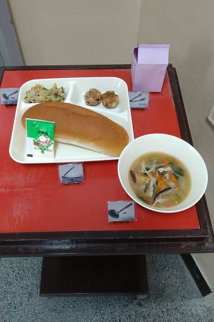 今日の給食は中華風メニューとなっています。小おかずの「ツナと野菜のオイスターソースいため」は、ツナのほかピーマンとキャベツが入っており、オイスターソースを使い、コクのある仕上がりになっています。