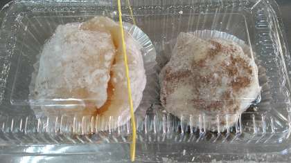 見本でできあがった「みかん大福」ど「チョコバナナ大福」です。クッキングが始まりました。包む材料はライスペーパーを使っています。