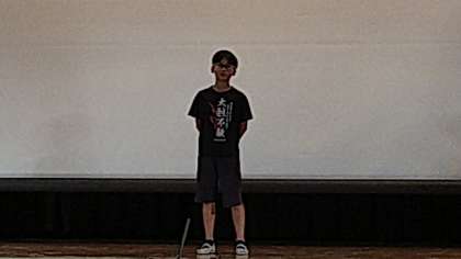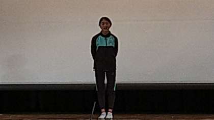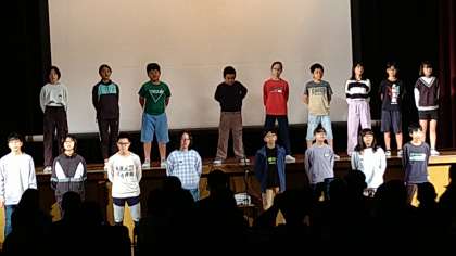 1人ずつの「詩の語り」が終わり、最後に全員で「心に太陽を持て」を語っています。その迫力によって終わったあと、講堂が盛大な拍手に包まれました。