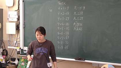 「2の段」から始まった九九も、「9の段」の学習となっています。残すところは「1の段」です。繰り返し練習してきた成果が出ており、指導者か発した「九九」に対して間髪入れずに答えを返せています。