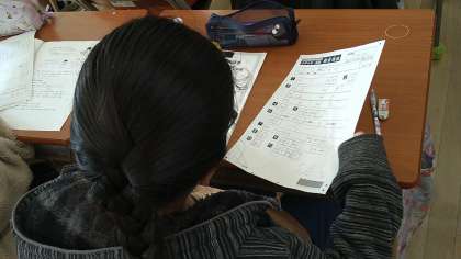 普段のテストは問題用紙と解答用紙が同じですが、学力経年調査や全国学力・学習状況調査は問題用紙と解答用紙が別々になっています。当日、戸惑わないように取り組んでいます。