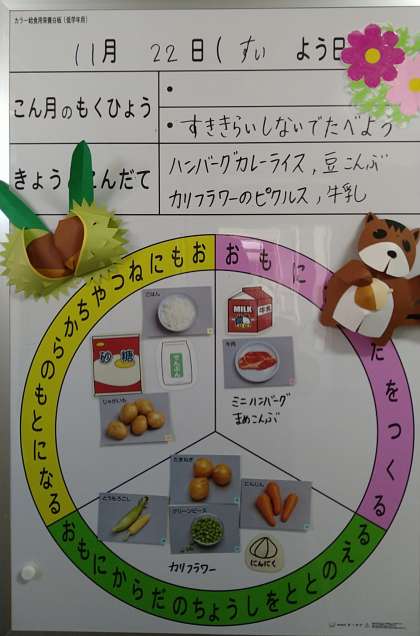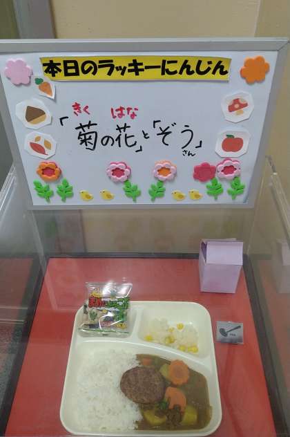 今日のメインは「ハンバーグカレーライス」です。子どもたちに人気のある「ハンバーグ」と「カレーライス」がセットになっています。楽しみにしている子どもたちがたくさんいます。