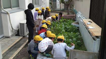 球根は、「ヒヤシンス」「クロッカス」「チューリップ」「スイセン」で、野菜は「天王寺蕪」「田辺大根」です。2つの場所の雑草をみんなで抜いています。
