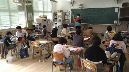 昨日おこなった練習調査を子どもたちに返却して、間違っている部分や注意するところを中心に解説をしています。