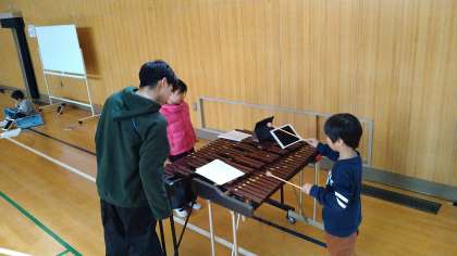 講堂で合奏の練習をしています。