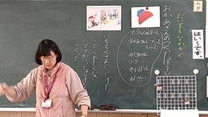 「おかあさんの つくった ぼうし」という題材を使って学習を進めています。