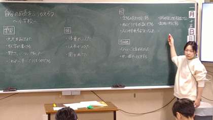 「学習」「体」「心」「その他」に分けて成長したことを発表しています。自分のことだけではなく友だちのことで気付いたことも発表しています。