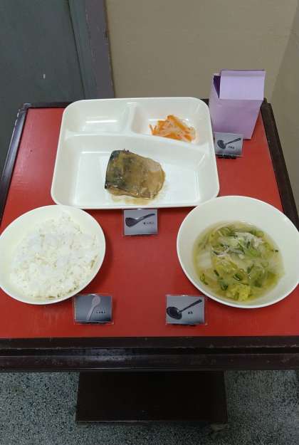 今日は、小おかずで「さばのみそ煮」が提供されています。「みそ」は、赤みそを使用しています。その他にも「しょうが