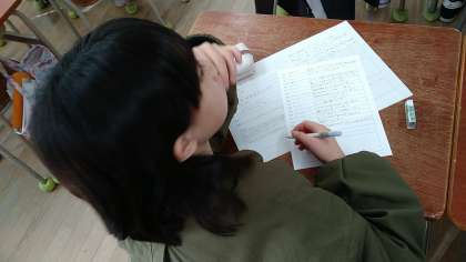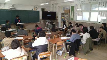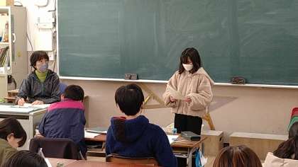 2月の参観で子どもたちが調理実習で作るもの(メニュー)を各自がプレゼンテーションをして投票しています。