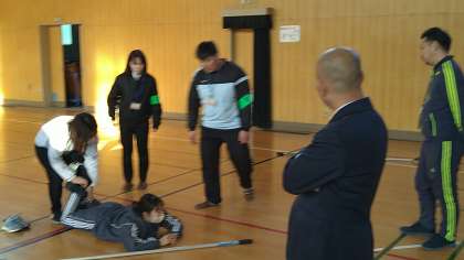 本日の放課後、東成警察署から3名の警察官の方々にお越しいただき、不審者対応の研修会をおこないました。さすまたの使用目的や学校内の備品で対応に活用できるものについて教えていただきました。さらに、警察署内でも指導されていることも教えていただきました。