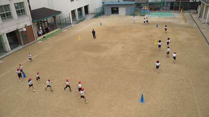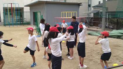「持久走」は3分間走り、1分間歩いて、3分間走っています。走り終わった直後は「暑い。暑い。」と言っています。「走り幅跳び」は今は「立ち幅跳び」をしています。