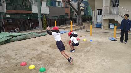寒空の下ですが、運動場で「持久走」と「走り幅跳び」に取り組んでいます。
