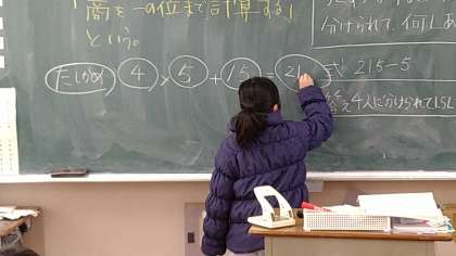 この時間は、小数(小数第一位)÷整数(一桁)の計算に取り組んでいます。確かめの計算の仕方もするようにしています。