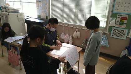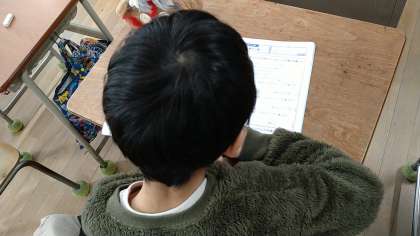 「算数ドリル」をする前に、「◯は□の何倍」、「◯は△の何倍」という問題に取り組んでいます。初めて0.◯倍について学習しています。