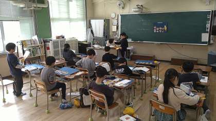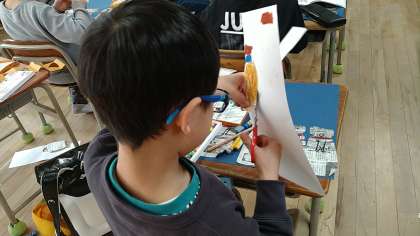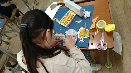 国語で学習した「かさこじぞう」を色画用紙で表現しています。