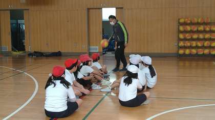 後半は、バスケットボール型のゲームをおこなっています。ルールを少しずつ増やしてゲームをおこなっています。