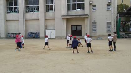 前半は、持久走を「3分(走る)ー1分(歩く)ー3分(走る)」で行い、後半は「たまごわりサッカー」をおこなっています。