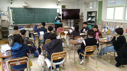 「フットサル・ロボ?」という実験教材を使って学習を進めています。この時間は、電磁石のはたらきを調べる実験をしています。