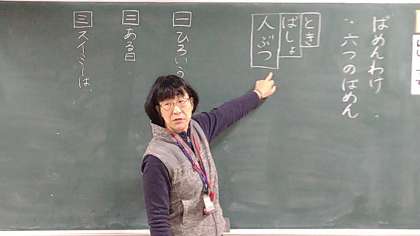 全文の場面分けををしています。「時・場所・人物」を手がかりにして、6つの場面に分けています。