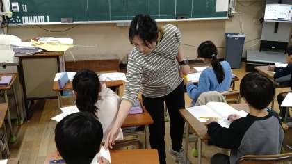 説明文は「はじめ・なか・おわり」の構成になっています。この時間は「なか」の4つの意味段落について、見出しを考えています。