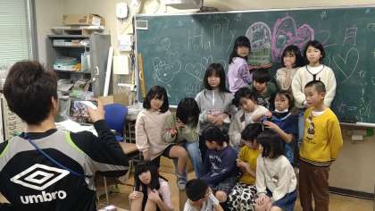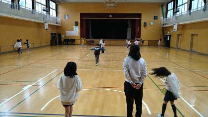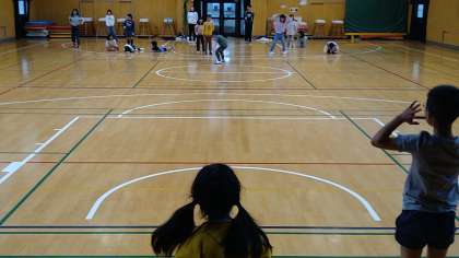 インタビュー(教室)→氷鬼(体育館)→記念撮影(教室)と移動しておこなっています。2月に誕生日を迎えた児童は2名います。