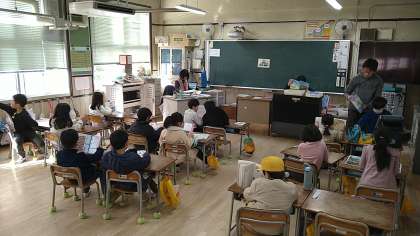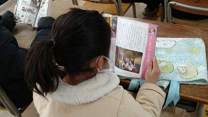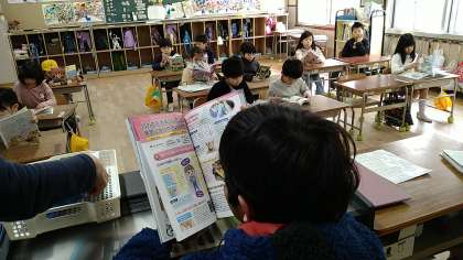 図書委員会に所属している子どもたちが、担当学年を決めて教室に行き、読書活動を啓発しています。子どもたちは静かに読書できています。