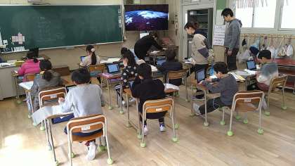この時間は、タブレット端末を用いてまとめています。この学習を通して、子どもたちはタブレット端末の活用の仕方を、かなり身につけることができました。まとめを楽しみにしておいてください。