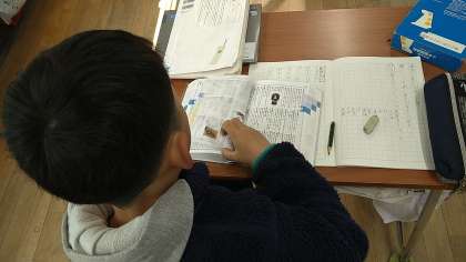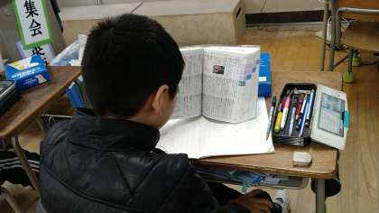 国語辞典を使って意味調べをしています。物語文を読み進めていくために語彙を理解しておくことは重要です。しっかり調べています。
