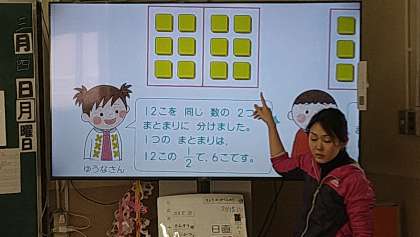 いくつかの分け方を分数を使って説明することに困っているようでした。算数(数学)的思考が要求される問題が少しずつ増えてきています。