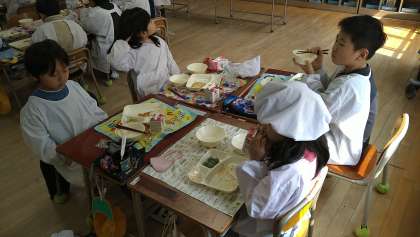 グループで会話をしながら楽しく食べています。今は、ほぼ全ての食缶が空になるくらい食べられるようになっています。