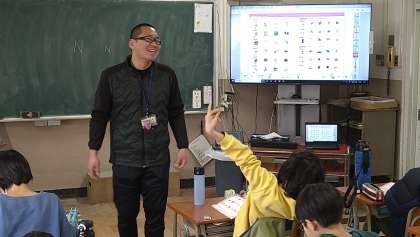 HORIZON」にスラスラと書き込んでいます。その後、終わりの音が同じものを聞き分ける学習をしています。