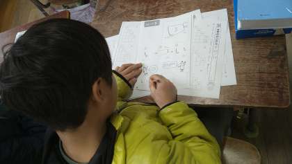 「と」「う」「こ」「も」「い」「り」の6つのひらがなを、ていねいに見えるポイントを指導してから練習しています。