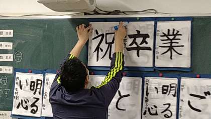 全部で13文字のメッセージを、卒業する6年生へ贈ります。気持ちを込めた作品となっています。