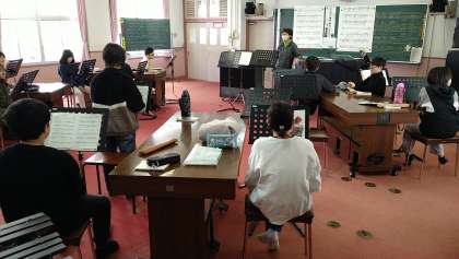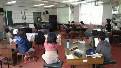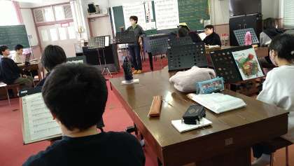 「明日へつなぐもの(二部合唱)」をペアで歌い、感想を伝え合っています。最後にリクエストタイムで「とんでったバナナ」を歌っています。