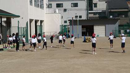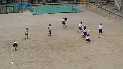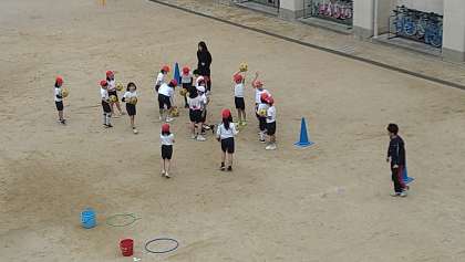 前半はなわ跳び、後半はボール蹴りゲームをしています。