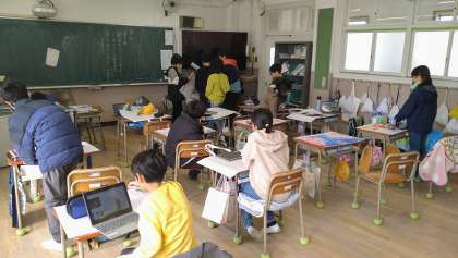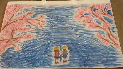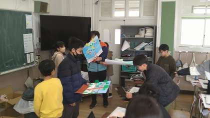 作品袋は力作がたくさんあります。1年間の作品を制作した作品袋に入れて持ち帰ります。