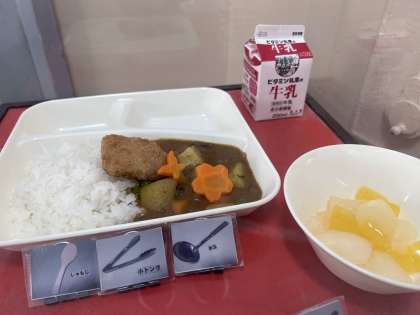 【カツカレーライス、牛乳、フルーツゼリー】