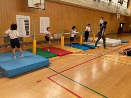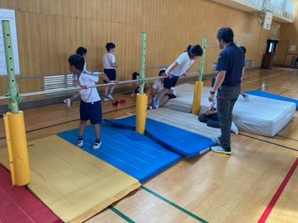 今日は自分の目指す技の練習した後、全体で「じごくまわりおり」「足かけふりあがり」に新しく取り組みました。
