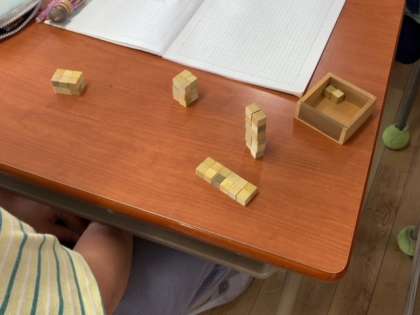 立体の体積についての学習を進めていました。体積12立方センチメートルになる形を作っています。