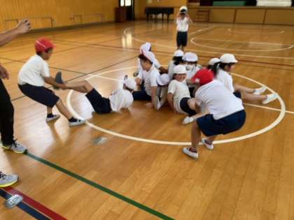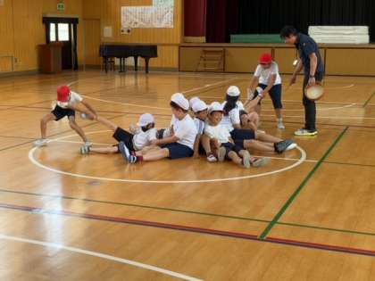 5年生は体育の授業、「ひっこぬき」の真っ最中でした。