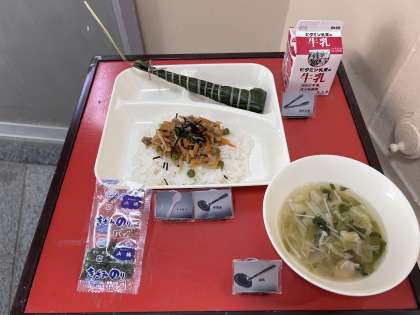 【きんぴらちらし、牛乳、すまし汁、ちまき】