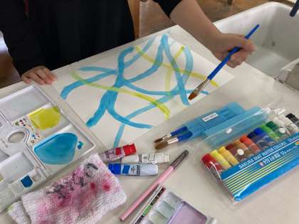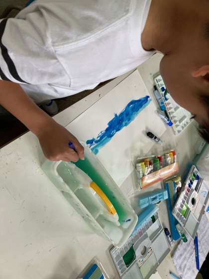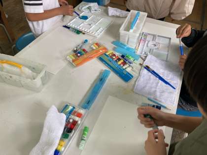 3年生は図工、絵の具を使っています。