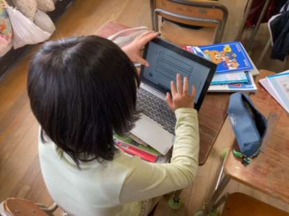 タブレットのデジタルドリルも活用してどんどん練習問題を解いていっていました。